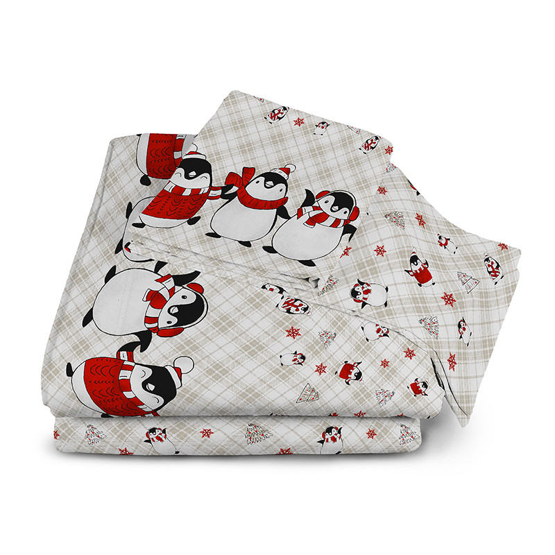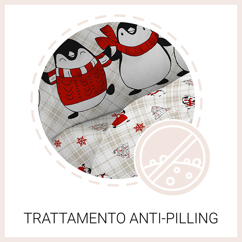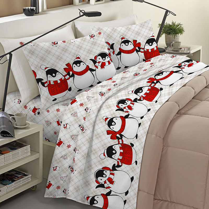 Completo Lenzuola in Flanella Anti-Pilling 100% Cotone - PINGUINI ROSSO